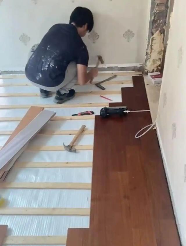 另一部分朋友选择打龙骨,虽然减少了异响,但因为施工高手的水平不同,也会因为施工不当出现缝隙、变形。