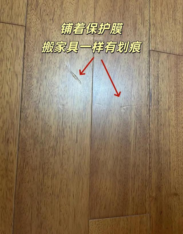 刚入住没几天,一次装修工人在门口装空调,手持电钻,不小心从梯子上掉下来,砸出个大坑。虽说搭了保护膜,但保护膜居然毫发无损,地板却留了明显的坑。