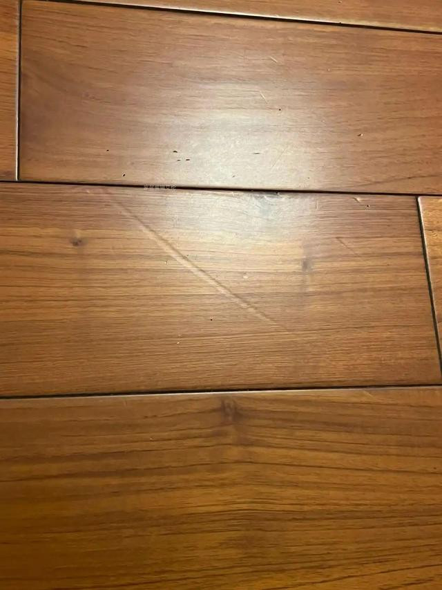 自己家里,除了家具磕磕碰碰外,日常挪动电器、电线等,也会留下划痕。特别是像我家的缅甸柚木,硬度还不错,但无奈实木光滑,刮擦还是十分明显。