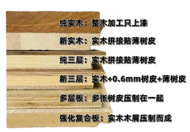 这个“大”字差距,可大了去了。市场上流行的三层、三层三层、多层实木,都是由一层实木皮+多层胶合板组成的复合材料。